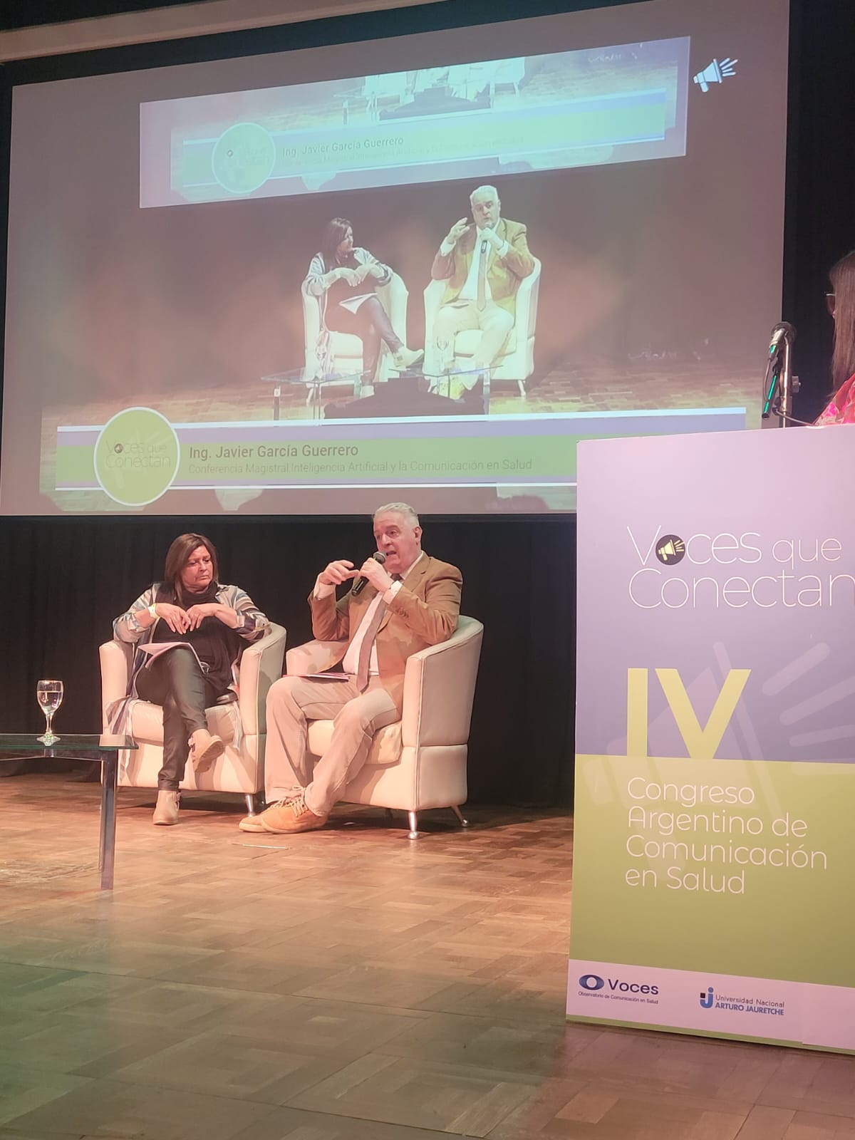 La primera conferencia magistral se tituló “Inteligencia Artificial y la Comunicación en Salud y estuvo a cargo del Ing. Javier García Guerrero, investigador y director de cursos de Inteligencia Artificial aplicada a la salud en las Universidades UNAJ, Isalud y en España. Ha sido miembro del 1º Consejo Superior de la Universidad Nacional de San Martín y director de la Especialización en Administración Hospitalaria del Colegio de Médicos de la Provincia de Buenos Aires. Y la Lic. y Prof. María Victoria Alday, profesora y licenciada en Letras Modernas y Licenciada en Lengua y Literatura Francesas. Docente-investigadora (categoría III) en la Facultad de Lenguas de la Universidad Nacional de Córdoba.